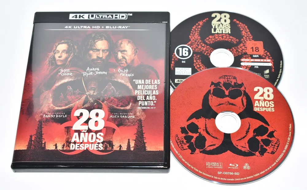 Todos los datos de la edición 4K UltraHD + Blu-ray de "28 Años Después" distribuida por Arvi Licensing bajo el sello de Sony Pictures. Disponible en tiendas desde el 26 de Septiembre de 2025.