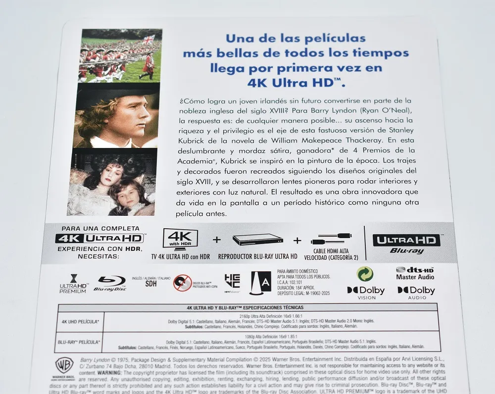 El Steelbook 4K de Barry Lyndon es precioso, la restauración en 4K es la mejor manera de ver Barry Lyndon, y la presentación general es de esas que hacen sonreír al coleccionista. ¿Lo malo?: pocos extras y una pista de audio castellano algo justita.