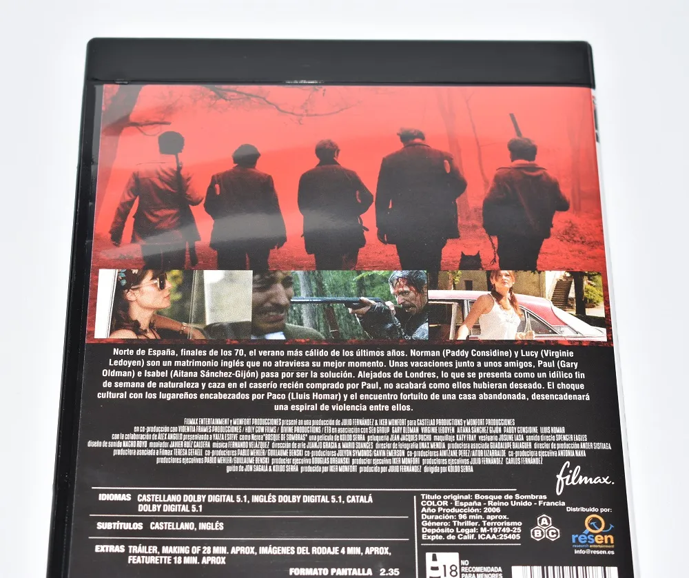 Resen apuesta aquí por una edición estándar en Blu-ray de Bosque de Sombras, con estuche negro y una carátula muy reconocible, respetando la identidad visual original de la película.