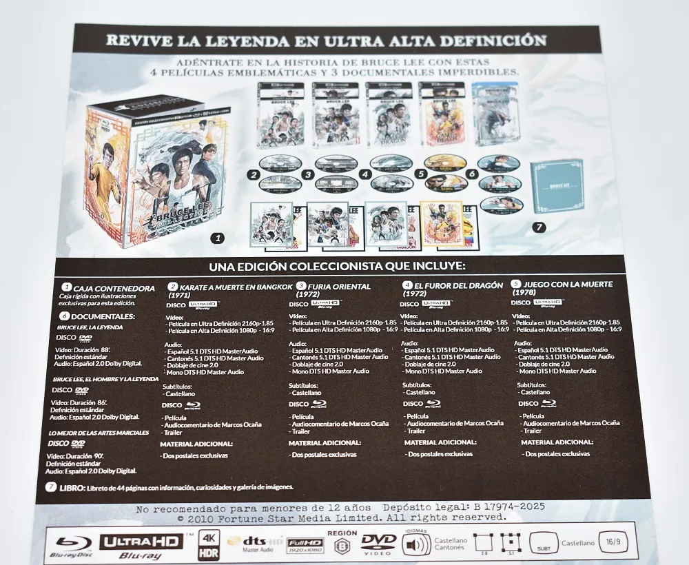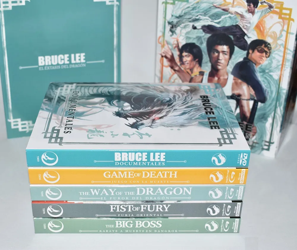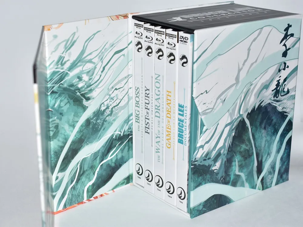 Lo que tenemos aquí es otra cosa. La Bruce Lee Collection (1971–1978) en 4K UltraHD + Blu-ray no es un simple pack: es una pieza de colección pensada para el fan que quiere tener el legado en su forma más cuidada.