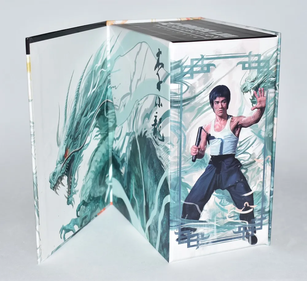 No estamos ante un simple cartón exterior. Es una caja sólida, robusta, imantada… y con presencia. El arte tiene carácter, elegancia y ese aire clásico que conecta directamente con la leyenda de Bruce Lee. Es de esas ediciones que colocas en la estantería y automáticamente se convierte en pieza central.