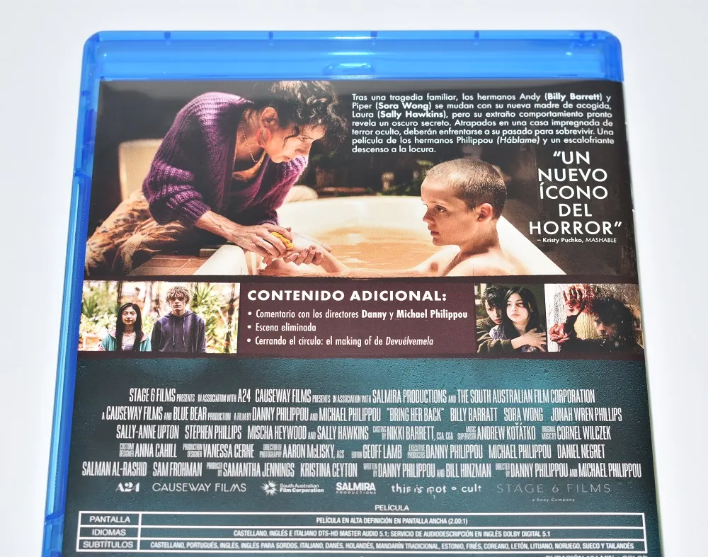 Devuélvemela llega en Blu-ray con una edición muy digna para cualquier coleccionista amante del terror moderno. La peli no solo mantiene el pulso heredado de «Háblame», sino que demuestra que los Philippou saben construir atmósferas intensas sin perder su sello.