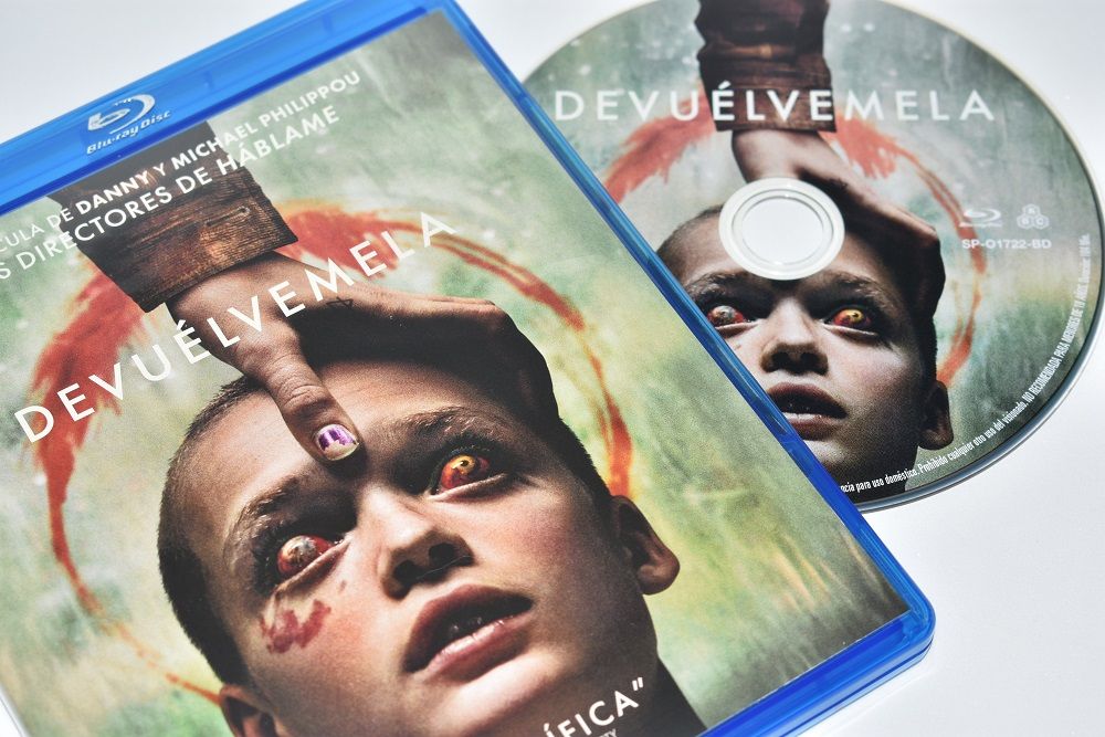 La edición en Blu-ray de Devuélvemela presenta una portada potente, que no se anda con rodeos: primer plano perturbador, mirada perdida y un dedo que ya deja claro por dónde van los tiros. Es de esas carátulas que, si la ves en la estantería, te obliga a mirarla dos veces… aunque no sepas si por curiosidad o por puro mal rollo.