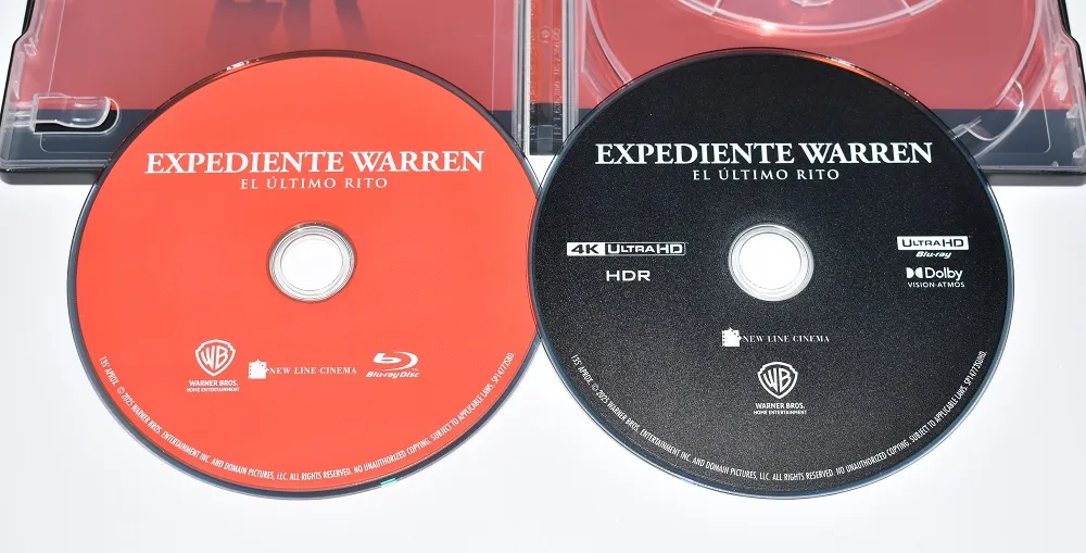 Los discos rematan la jugada: el 4K en negro, el Blu-ray en rojo, separados como si cada uno representara un lado del ritual. Todo muy sobrio, muy cuidado, y con personalidad sin necesidad de volverse loco con el diseño.