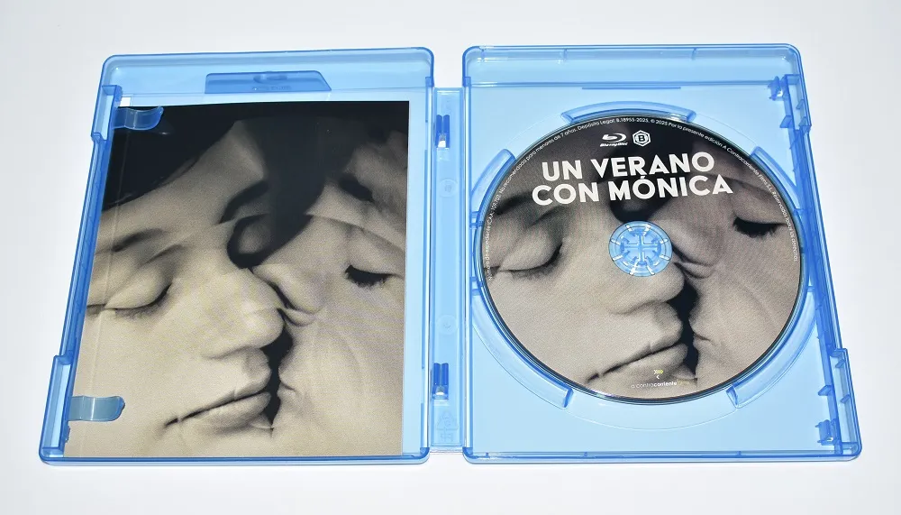 Si Fresas salvajes respiraba elegancia clásica, el Blu-ray de Un verano con Mónica tira más hacia lo emocional y lo carnal. Aquí el protagonismo absoluto se lo lleva ese primer plano icónico, íntimo y casi hipnótico, que se repite en funda slipcover, carátula, disco y libreto.