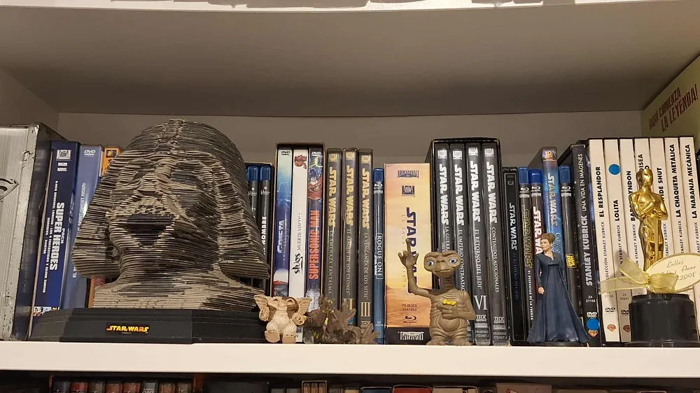 La verdad es que, de la sala con las pelis, los libros y los vinilos (también los hay por ahí)… en el tiempo que tardase en decidir qué salvar, ya habría ardido todo. Pero supongo que me llevaría el pack de la trilogía original de «Star Wars» firmado por Dave Prowse, porque es absolutamente irreemplazable por razones obvias; el Blu-ray de «El día de la bestia» firmado por Álex de la Iglesia, y seguramente después el pack de películas de «Godzilla» de la era Showa, porque me costó lo suyo encontrarlo (aunque, precisamente ayer, vi que lo volvían a tener en El Setanta-nou) y pagarlo.