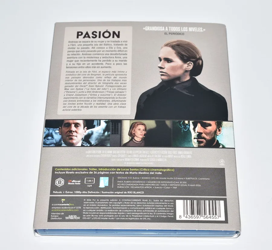 Todos los datos de la edición Amaray de "Pasión" (Blu-ray) distribuida por A Contracorriente. Disponible en tiendas desde el 14 de abril de 2026.