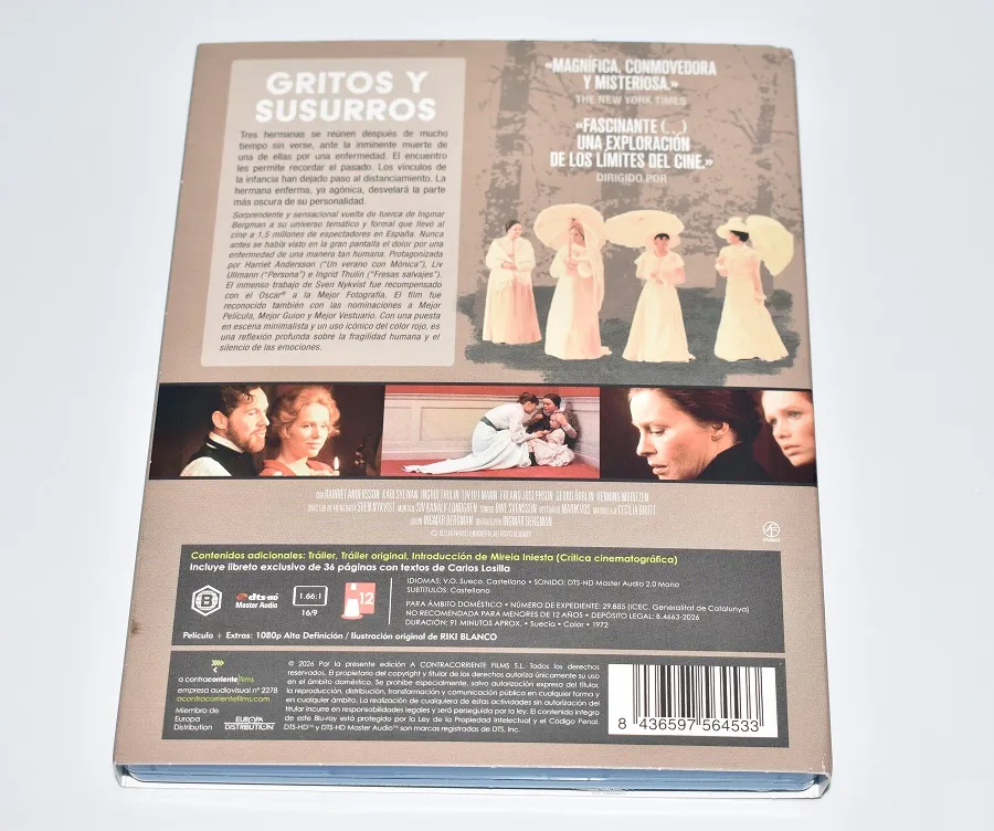 Todos los datos de la edición Amaray de "Gritos y Susurros" (Blu-ray) distribuida por A Contracorriente. Disponible en tiendas desde el 14 de abril de 2026.