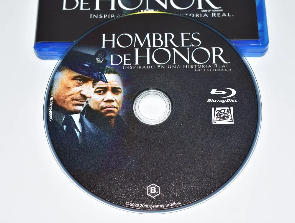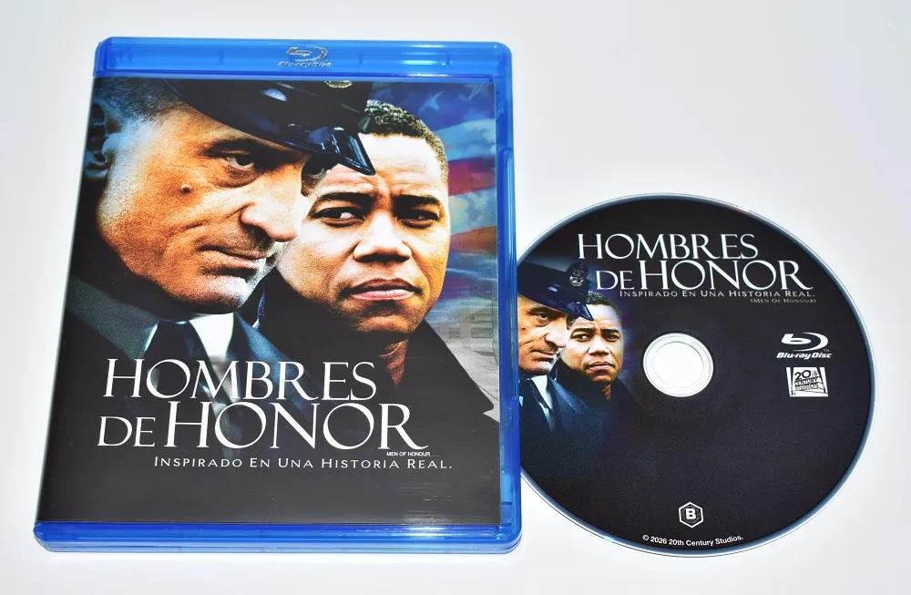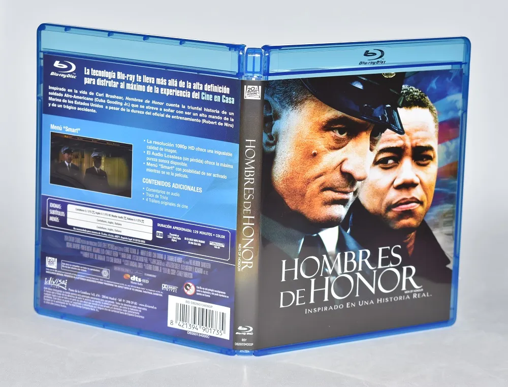 Hombres de Honor llega en Blu-ray en una edición sencilla, de las de toda la vida, pero bien presentada y sin inventos raros. Estuche amaray estándar, con un diseño de portada que seguro te suena: primeros planos de Robert De Niro y Cuba Gooding Jr., miradas serias, bandera americana de fondo y aire solemne.