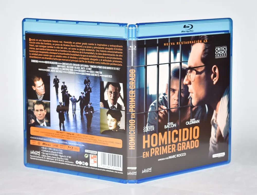 Homicidio en primer grado llega de nuevo en Blu-ray en España de la mano de Divisa Films / Studiocanal, y lo hace con una nueva restauración 4K que le sienta francamente bien… pero, sobre todo, con un detalle clave que muchos llevábamos años esperando: audio en castellano. Sí, el doblaje español de toda la vida, no latino como en la edición anterior. Solo por eso, esta edición ya gana enteros.