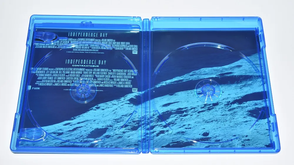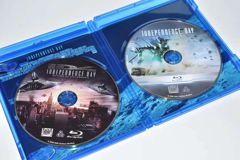 En el caso de Independence Day, se incluye el mismo disco de la edición 20º aniversario, con una restauración que ya en su día dejó muy buen sabor de boca. El máster se mantiene limpio, con buen nivel de detalle, colores vivos y un contraste más que notable, haciendo que la destrucción masiva y los efectos prácticos sigan luciendo realmente bien pese al paso de los años.