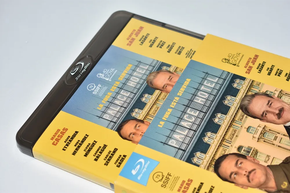 Tanto la funda como el estuche y el propio disco utilizan el cartel original, en ese tono amarillo tan llamativo, con Mario Casas y Alberto San Juan como protagonistas absolutos de la escena, y el Hotel Palace de fondo.