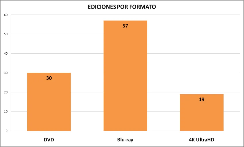 Ahora bien, si vamos al número real de títulos, la cosa se ajusta. De esas 106 ediciones, en realidad hablamos de 75 películas o packs diferentes. Y aquí el reparto está bastante equilibrado: