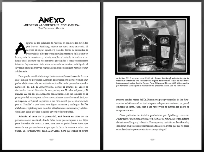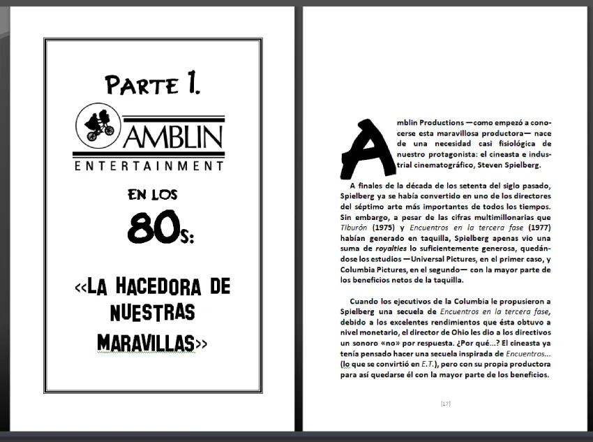- Título: AMBLIN. La productora de nuestras Maravillas. Sus primeros 45 años. Un repaso histórico-crítico por la películas producidas por la factoría de Steven Spielberg.