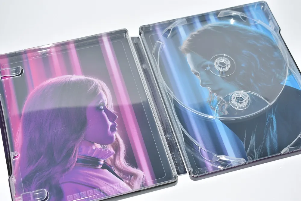Los dos discos (Blu-ray y 4K UltraHD) lucen geniales, con un arte similar, minimalista y muy de videojuego futurista. Es de esas ediciones que colocas en la estantería y se nota que destaca más que el resto.