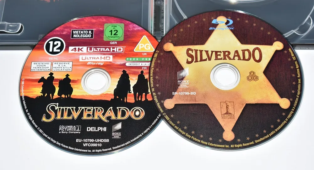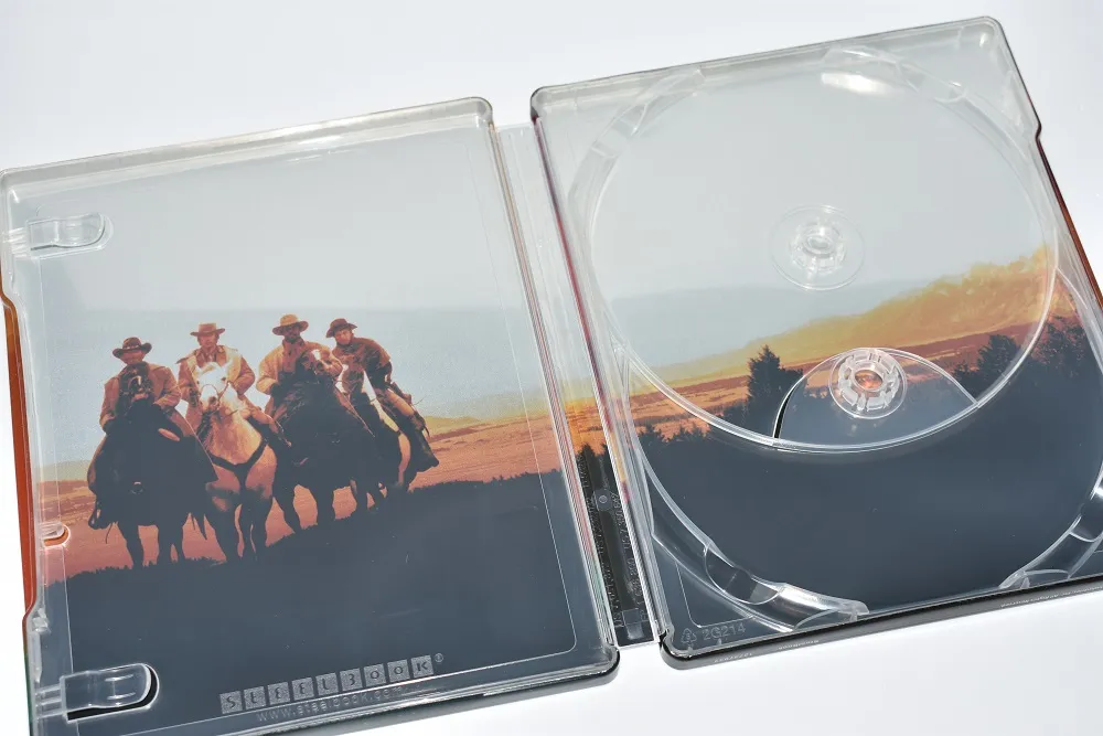 La serigrafía de los discos también es un acierto: el 4K muestra las figuras de los vaqueros sobre el horizonte, mientras que el Blu-ray luce una estrella de sheriff que encaja como un guante con la temática. Detalles, sí, pero de esos que marcan la diferencia cuando abres una edición y te das cuenta de que está hecha con cariño.