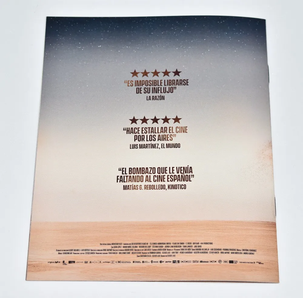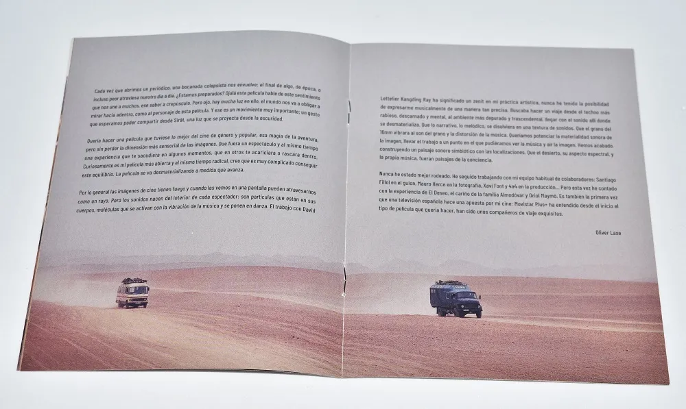 Dentro nos encontramos con un diseño con imágenes limpias, mucho espacio para respirar y un protagonismo claro del paisaje y la atmósfera. Nada está puesto al azar, y se nota que hay una intención clara de que la edición física dialogue con el tono del film, algo que no siempre se cuida tanto como debería.