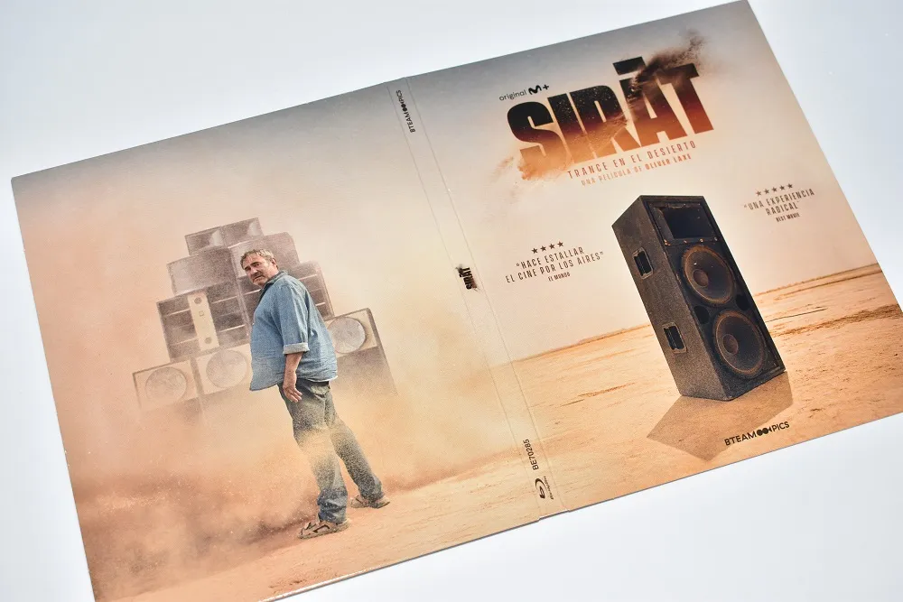 La edición de Sirat en Blu-ray se presenta en un digipak muy fino, de esos que entran bien por los ojos y no ocupan media estantería, acompañado además por una funda que le da un puntito extra de protección y presencia. Minimalista, pero con personalidad.