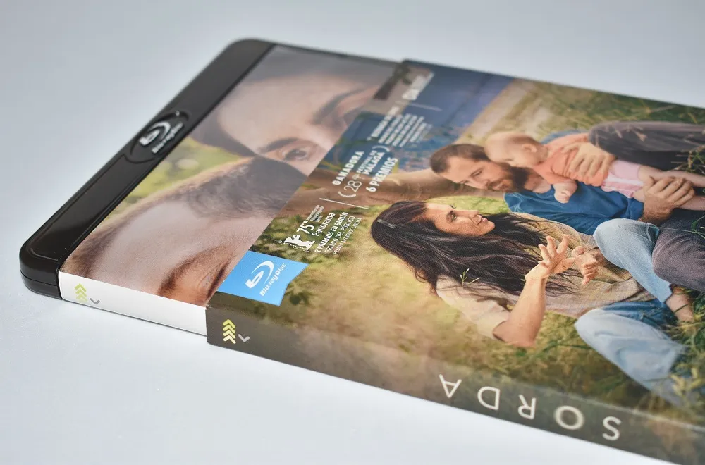 Aquí tenemos un combo que entra por los ojos nada más sacarlo de la caja: funda slipcover de acabado mate con una preciosa imagen de la familia en el campo (que ya te transmite ese tono intimista de la peli), y estuche negro translúcido que le da un toque elegante y diferente.