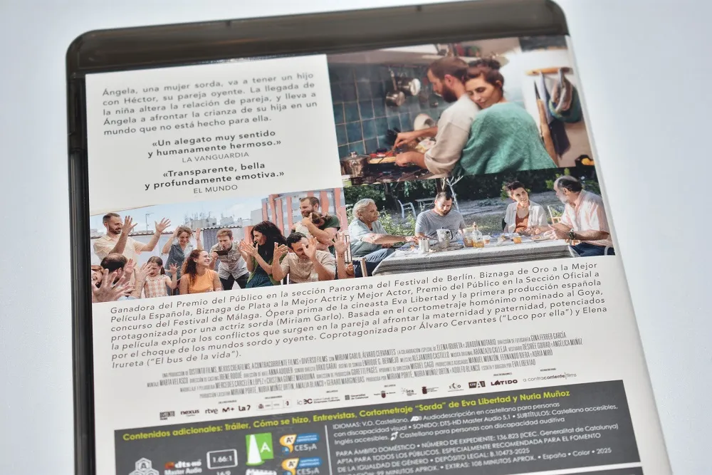 La edición en Blu-ray de «Sorda» respeta el formato original de la película, presentándose en un aspect ratio de 1.66:1, que conserva toda la intención visual de la directora.