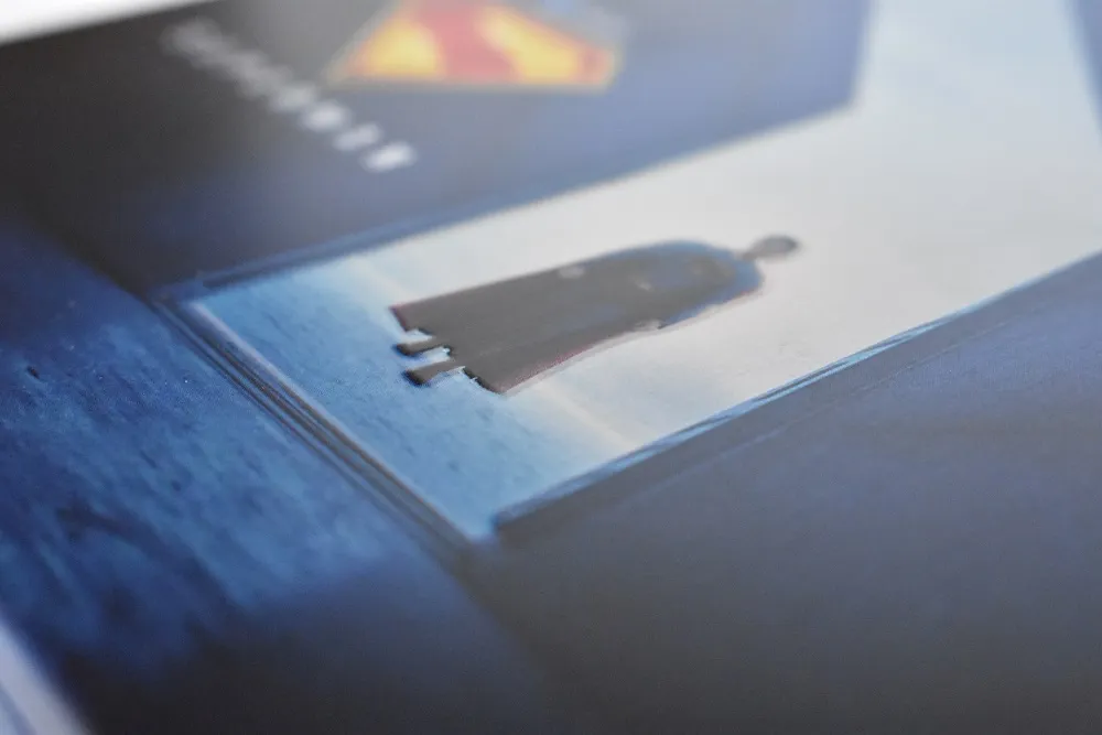 Pero lo mejor es que el diseño tiene relieve: la entrada de la Fortaleza de la Soledad está en bajo relieve, mientras que la figura de Superman va en relieve, creando un efecto tridimensional que, en mano, se ve brutal.