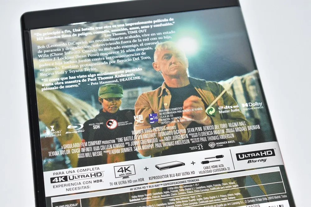 La edición de Una Batalla tras otra en 4K UltraHD + Blu-ray nos llega bajo el sello de Warner Bros., con distribución en España de Arvi Licensing, y lo hace con un estilo sobrio y directo.