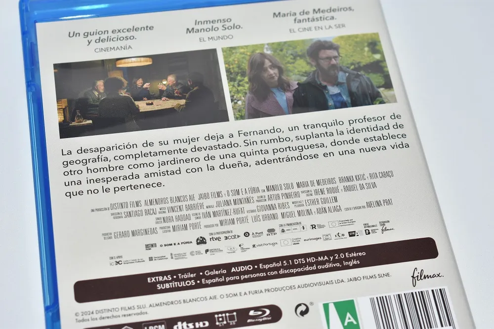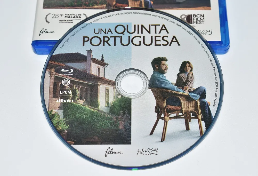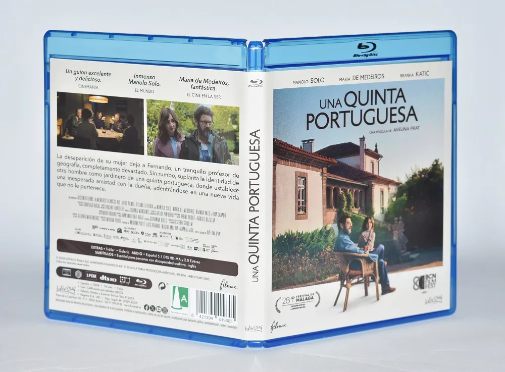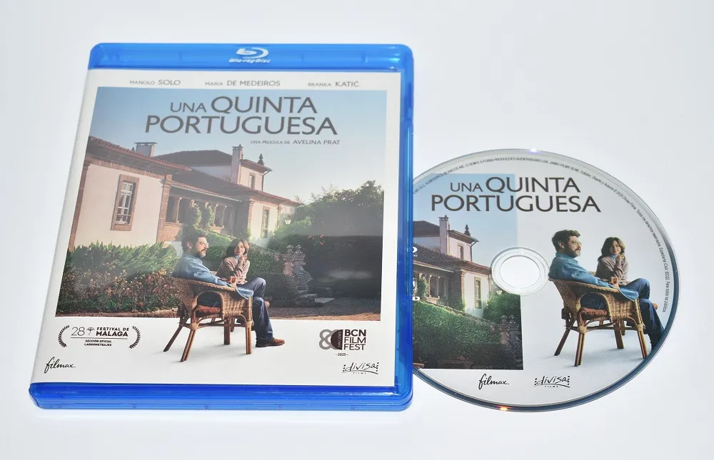 La edición que nos trae Divisa de Una Quinta Portuguesa en Blu-ray presenta una portada con Manolo Solo y María de Medeiros sentados frente a la casa que da título a la película, una imagen que ya te transmite ese aire calmado y reflexivo que respira todo el film.